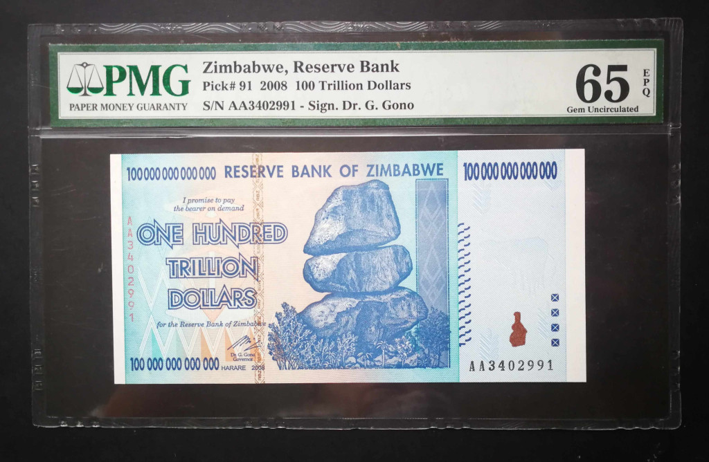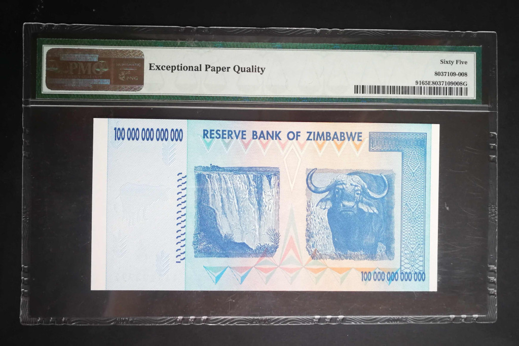 Zimbabwe 100 billió Dollars 2008 UNC PMG 65 minősített bankjegy