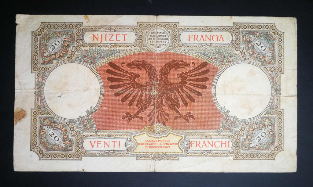Albania 20 Franga 1939 VG+