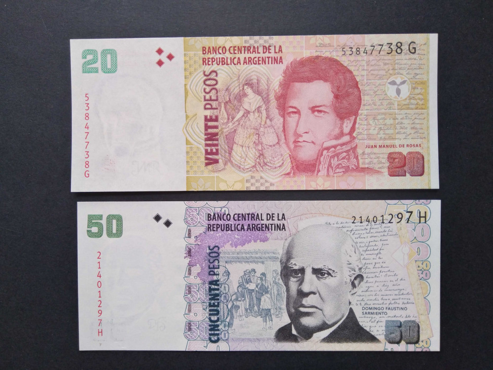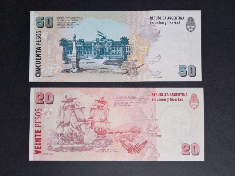 Argentina 50 Pesos 2012, 20 Pesos 2018 Unc