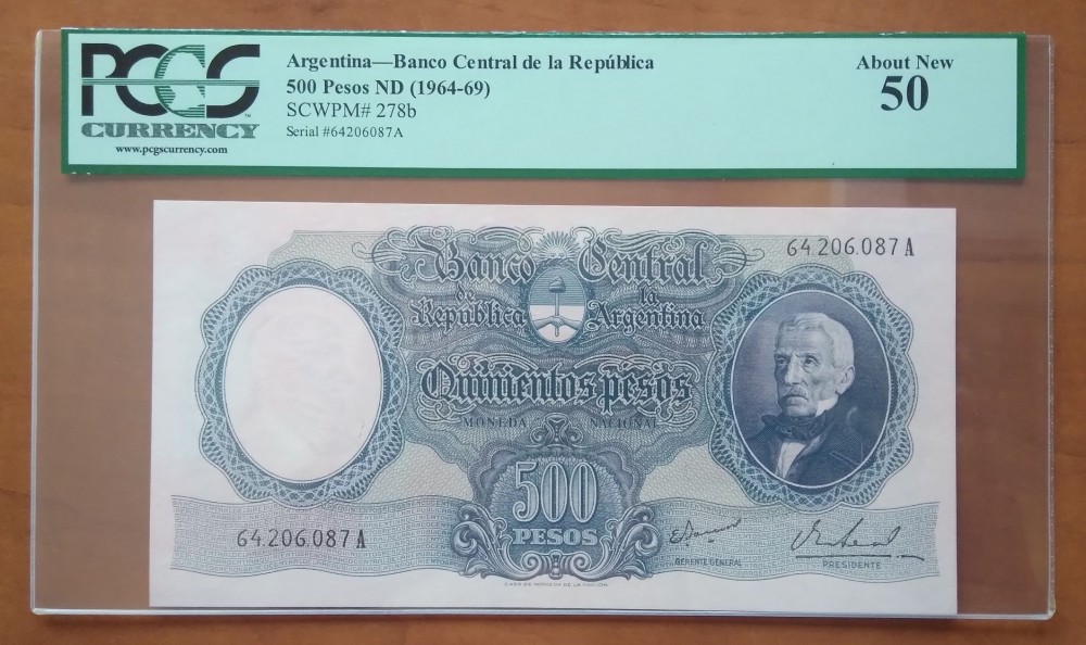 Argentina 500 Pesos 1964-69 aUnc - PCGS certified