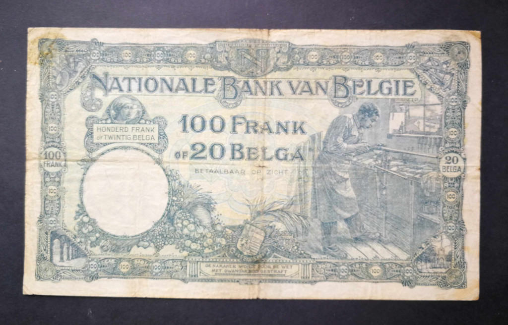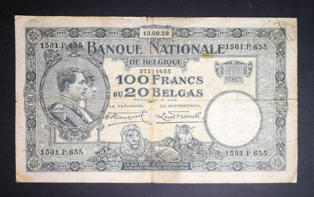 Belgium 100 Francs/20 Belgas 1929 VG+