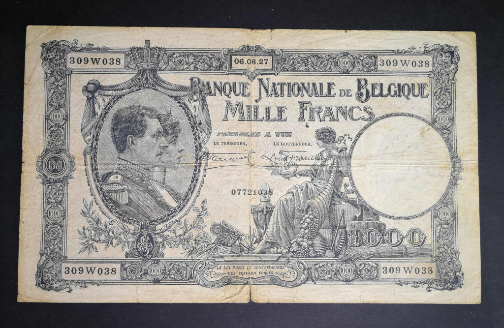 Belgium 1000 Francs 1927 VG+