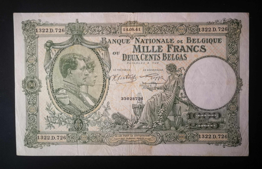 Belgium 1000 Francs/200 Belgas 1941 VF