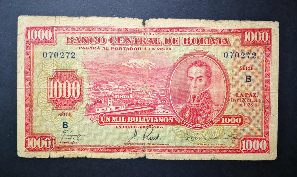 Bolivia 1000 Bolivianos 1928 VG