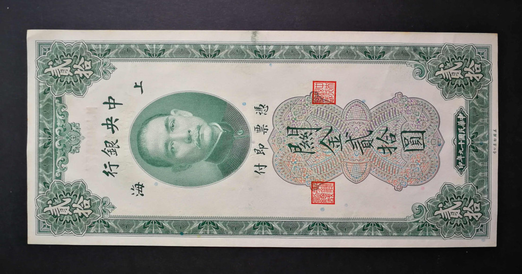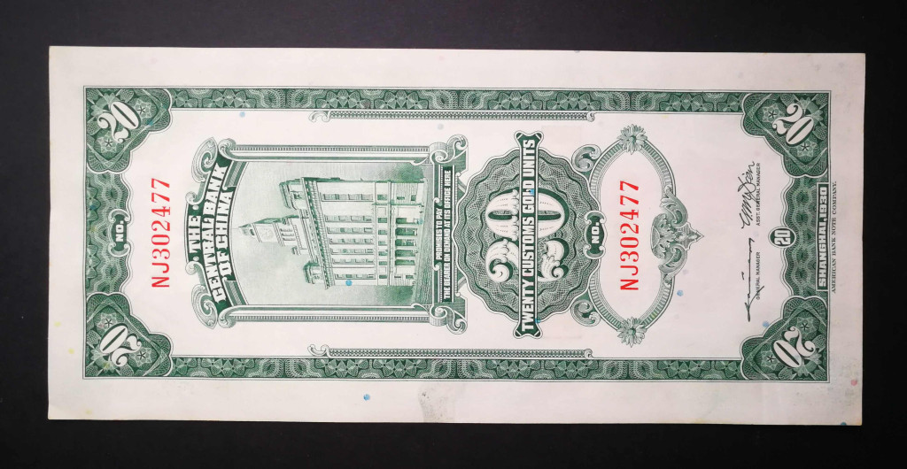 China 20 Customs Gold Units 1930 VF+