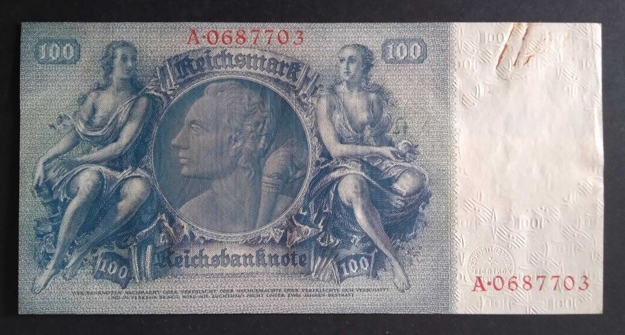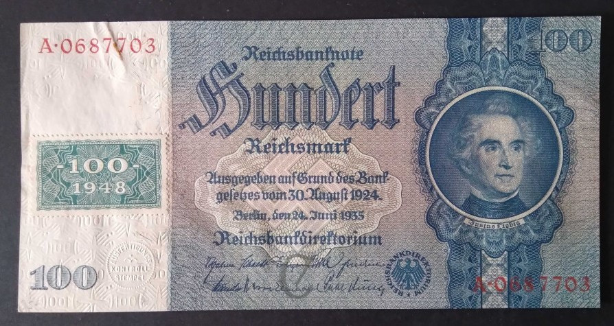 Germany 100 Reichsmark 1935 GDR 1948 overstamp XF+Without bending.
