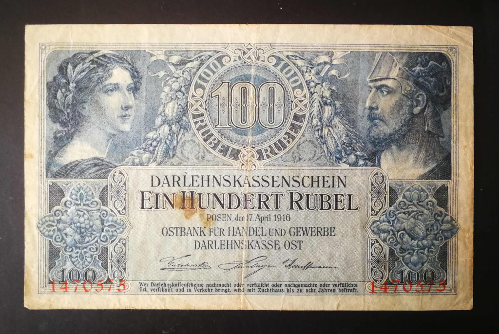 Germany 100 Rubel 1916 POSEN Poland, Lithuania occupation F