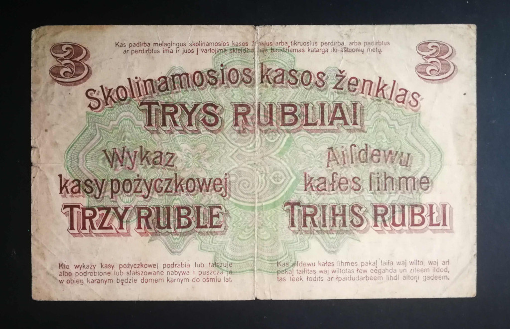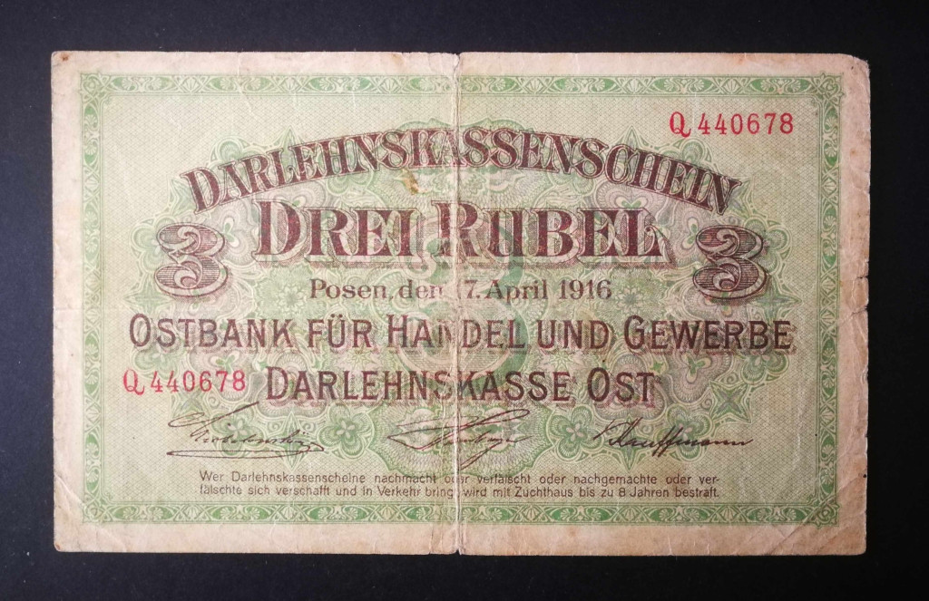 Germany 3 Rubel 1916 POSEN Poland, Lithuania occupation VG+