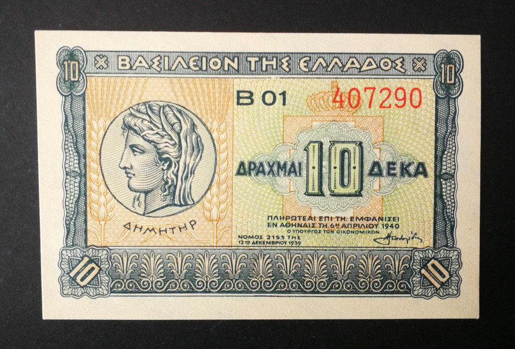Greece 10 Drachma 1940 UNC