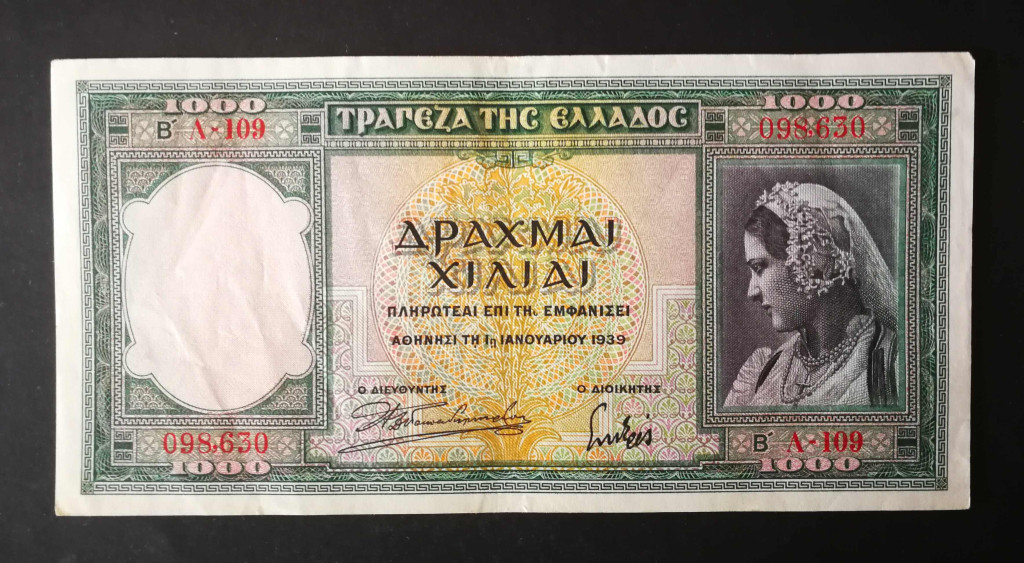 Greece 1000 Drachma 1939 VF