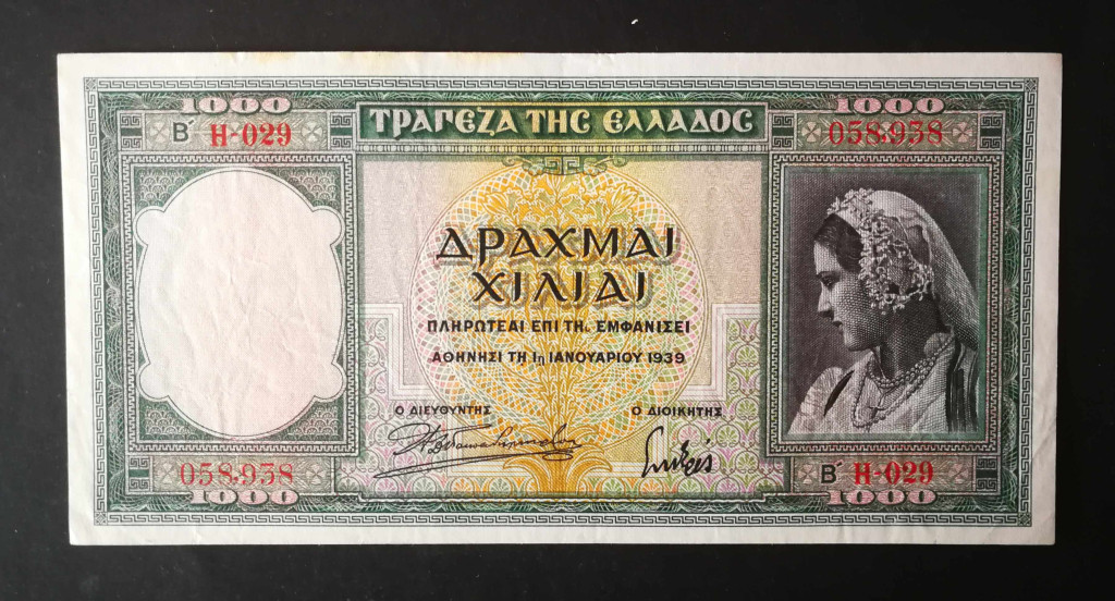 Greece 1000 Drachma 1939 VF