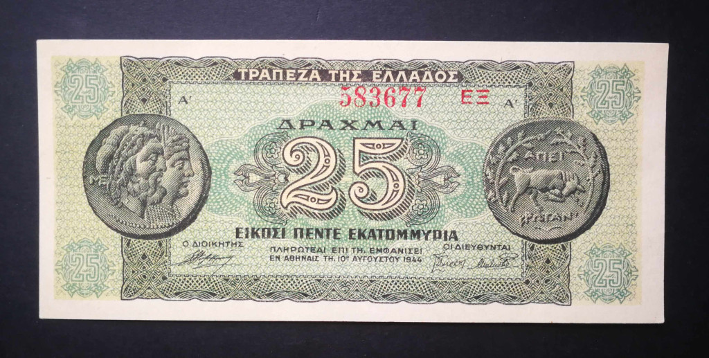 Greece 25 million Drachma 1944 XF