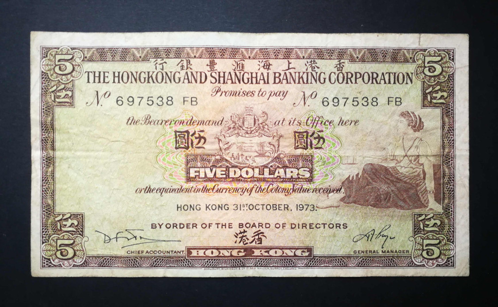 Hong Kong 5 Dollars 1973 F HSBC