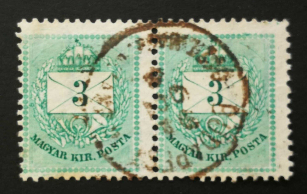 Hungary 1881 Letter, coloured cipher 3 Kr. in pairs perf. 12:11 1/2 Budapest used