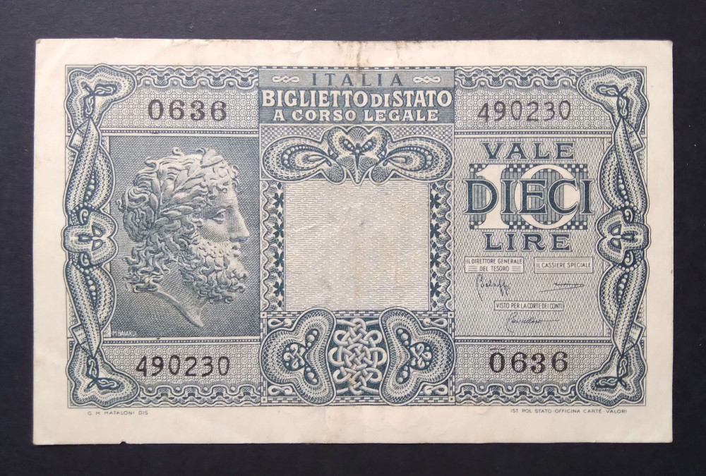 Italy 10 Lire 1944 VF