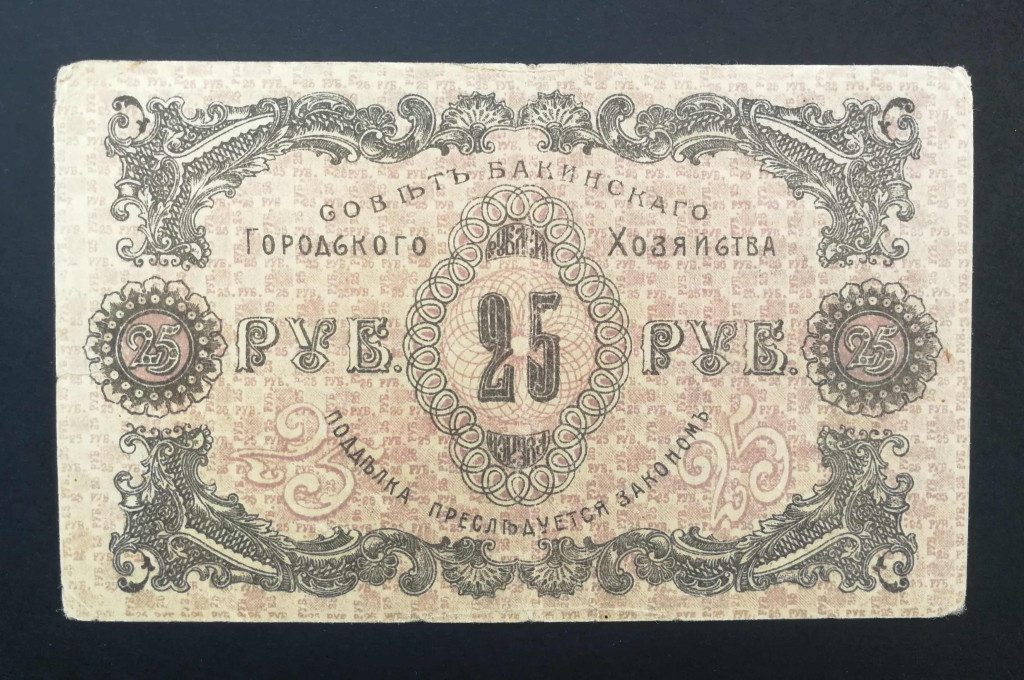 Russia 25 Rubles Azerbaijan Baku 1918 F