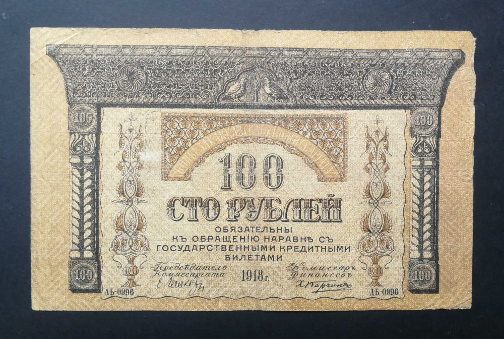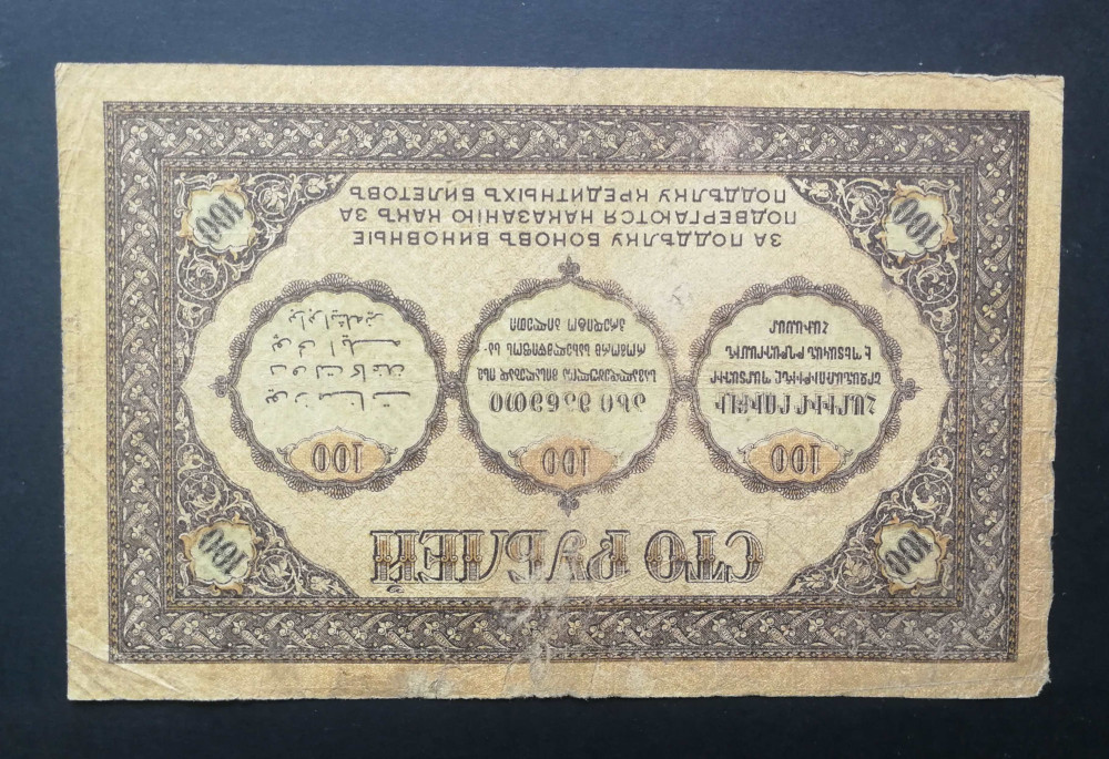 Russia Transcaucasia Armenia Azerbaijan Georgia 100 Rubles 1918 F-