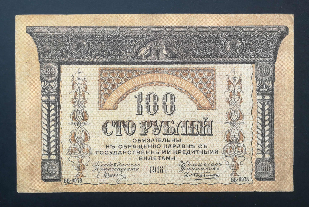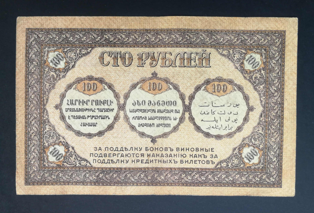 Russia Transcaucasia Armenia Azerbaijan Georgia 100 Rubles 1918 F