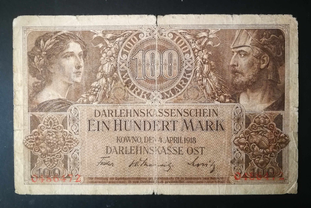 Germany 100 Mark KOWNO Poland, Lithuania, Latvia occupation 1918 F