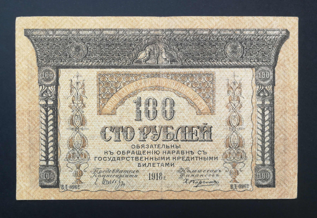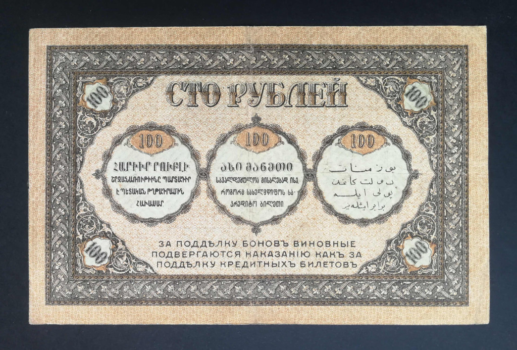 Russia Transcaucasia Armenia Azerbaijan Georgia 100 Rubles 1918 F+