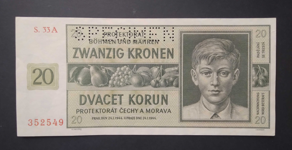 Bohemia-Moravia Protectorate 20 Korun 1944 Specimen XF