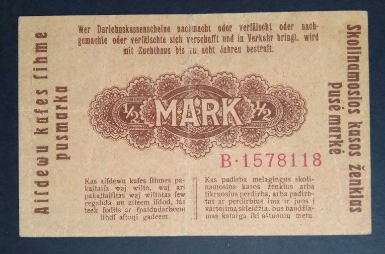 Germany 1/2 Mark Poland, Lithuania, Latvia occupation 1918 VF+