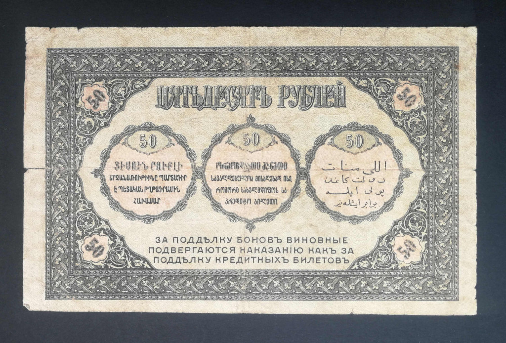 Russia Transcaucasia Armenia Georgia Azerbaijan 50 Rubles 1918 VG+
