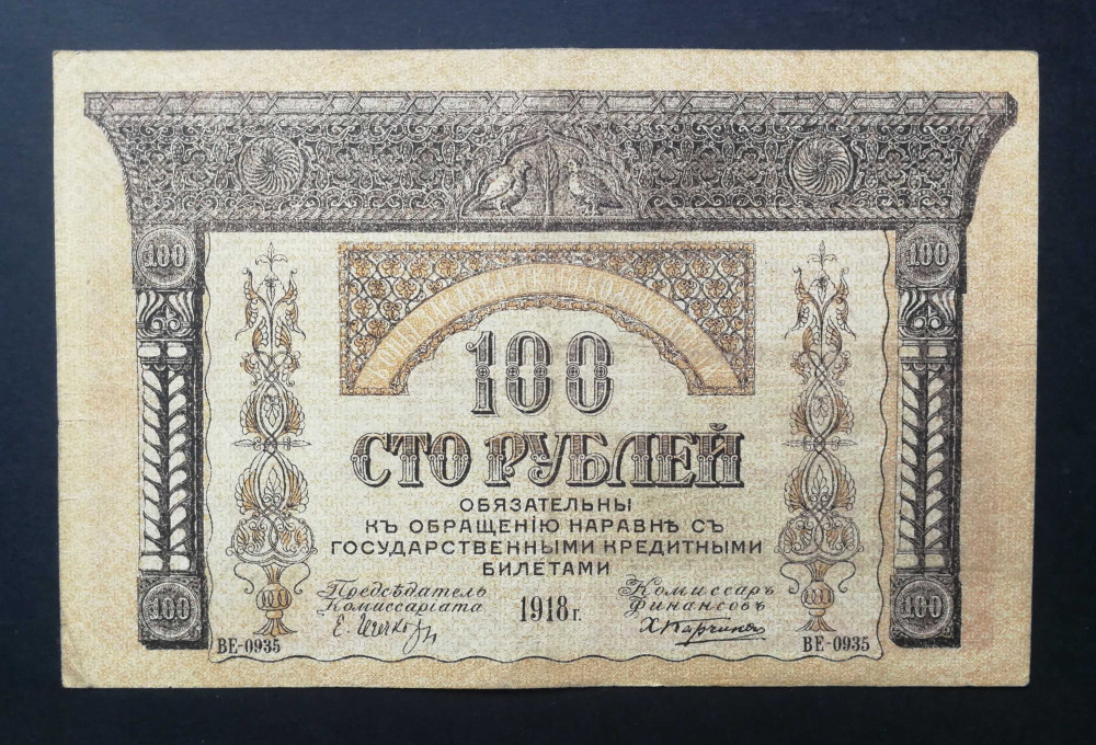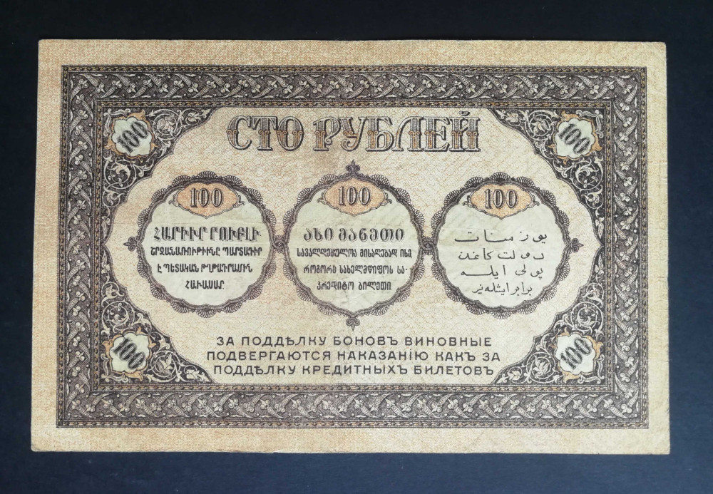 Russia Transcaucasia Armenia Georgia Azerbaijan 100 Rubles 1918 VF