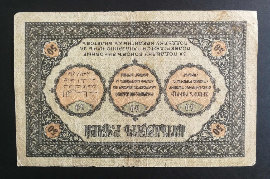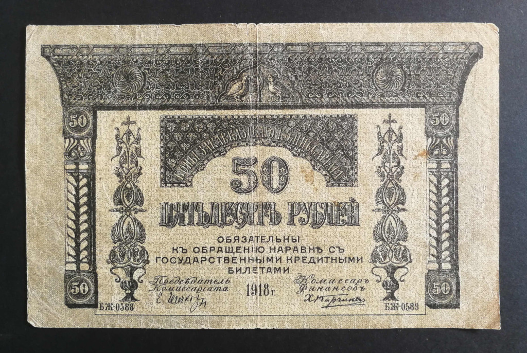 Russia Transcaucasia Armenia Georgia Azerbaijan 50 Rubles 1918 F
